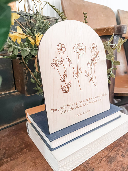 The Good Life is a Process, not a State of Being | Carl Rogers Quote | Positive Wall Art | Boho | Handmade | Boho Shelf Sign | Arched Signs