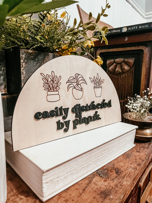 Easily Distracted By Plants Sign | Crazy Plant Lady | Plant Lover Gift | Spring Art | Boho Shelf Decor Art
