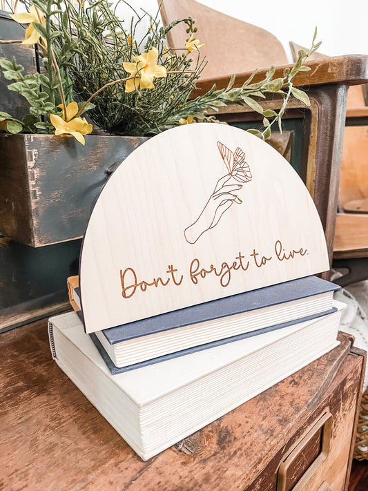 Don't Forget to Live | Positive Wall Art | Boho Office Decor | Shelf Sign | Handmade