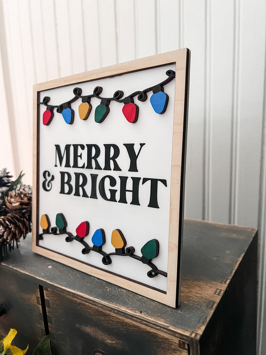 Merry & Bright Christmas Lights Framed Sign | Framed Christmas Sign | 3D Sign | Laser Engraved | Boho Christmas Sign | Arch Sign