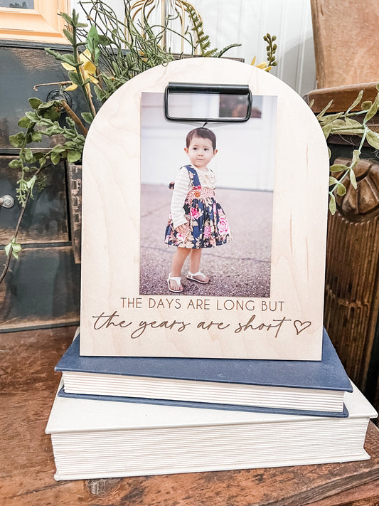 The Days are Long but the Years are Short Picture Frame Sign | Laser Engraved | Gift for Mom | Handmade | Boho Shelf Sign | Arched Signs