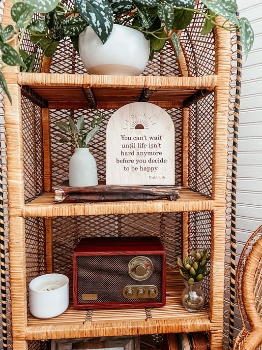 You Can’t Wait Until Life isn’t Hard Anymore to Decide to be Happy | Positive Wall Art | Boho | Handmade | Boho Shelf Sign | Arched Signs