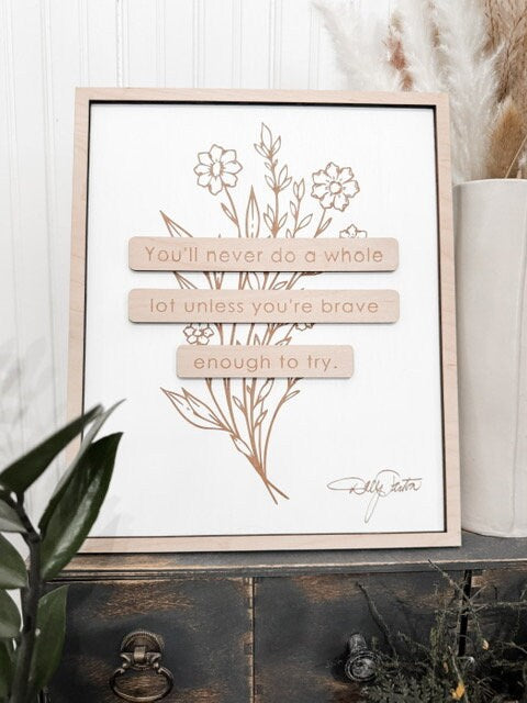 You'll Never Do A Whole Lot Unless You're Brave Enough To Try Sign | Laser Engraved | Boho Decor | Handmade | Framed Signs | Office Decor