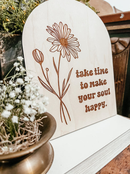 Take Time to Make Your Soul Happy | Positive Wall Art | Boho | Handmade | Boho Shelf Sign | Arched Signs