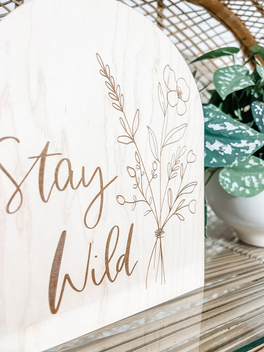 Stay Wild Boho Arch Sign | Laser Engraved | Boho Decor | Handmade | Boho Shelf Sign | Arched Signs