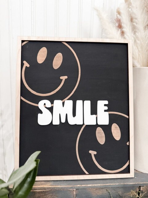 Retro Smiley Face Smile Framed Sign | Laser Engraved | Boho Decor | Handmade | Framed Signs | Office Decor