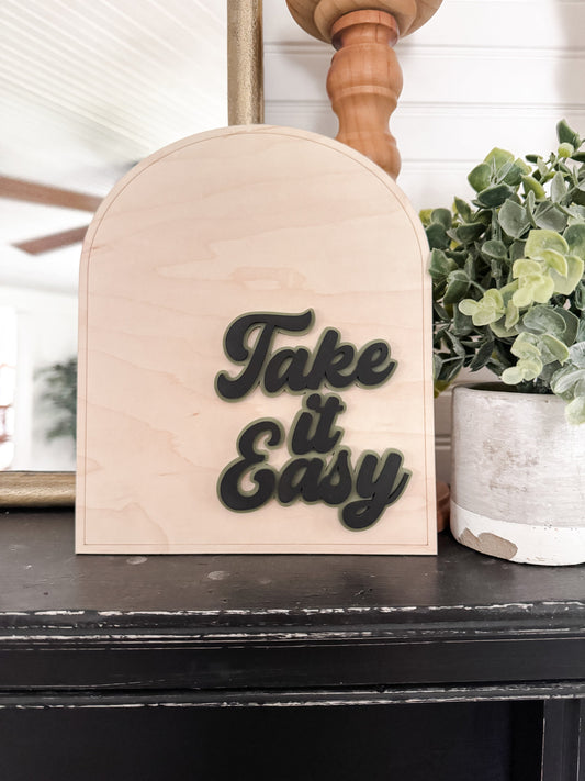 Take It Easy | Positive Wall Art | Boho | Handmade | Boho Shelf Sign | Arched Signs | Retro Home Decor | Hang Loose Sign