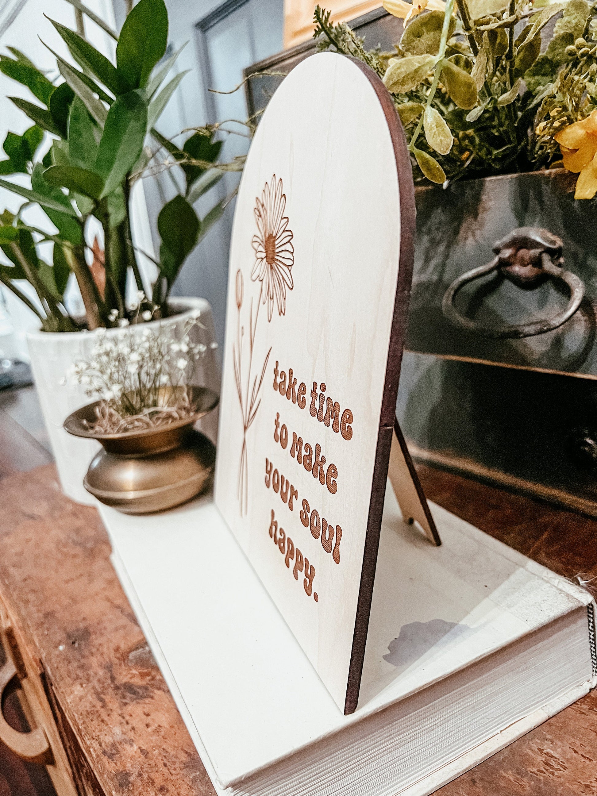 Take Time to Make Your Soul Happy | Positive Wall Art | Boho | Handmade | Boho Shelf Sign | Arched Signs